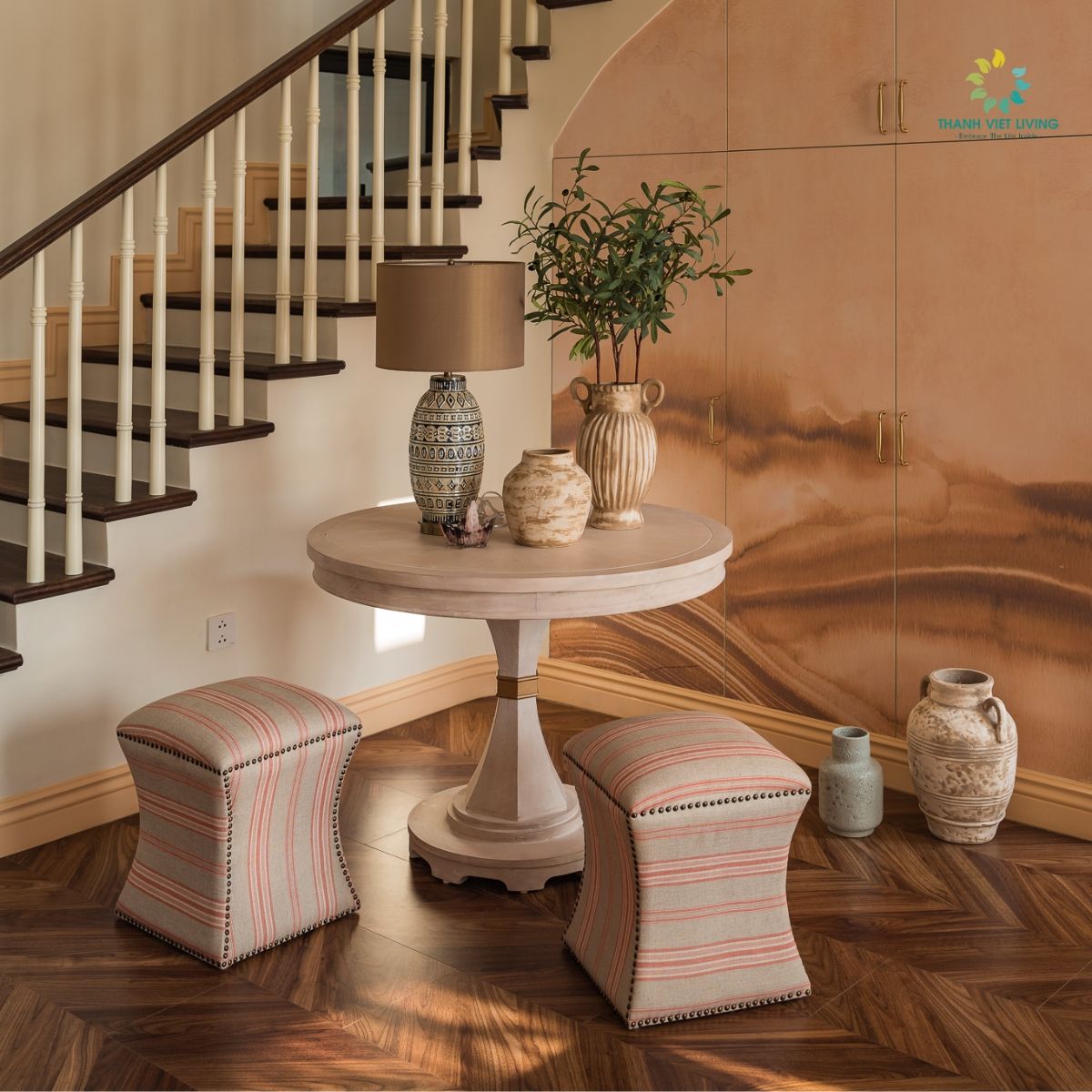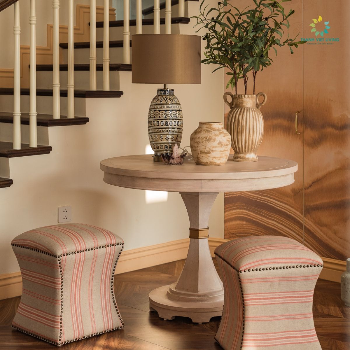 Đôn Illizini sử dụng gỗ Tần bì nhập khẩu xẻ sấy sơn Inchem nhập khẩu Mỹ lau màu theo phối cảnh bọc nỉ màu tự chọn theo bảng màu.