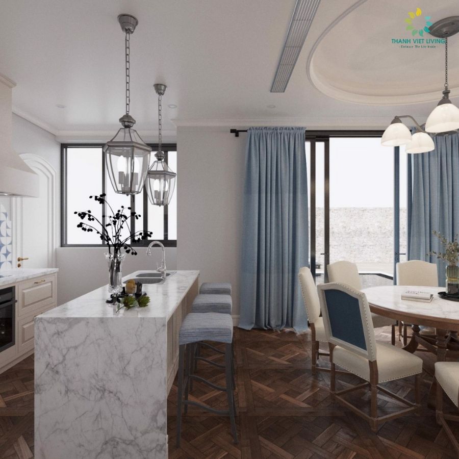 Ghế bar Avessco sử dụng gỗ Sồi Mỹ tự nhiên tẩm sấy sơn màu tự chọn theo bảng màu (Đơn giá bao gồm mặt đá Vicostone nhóm A BQ400)