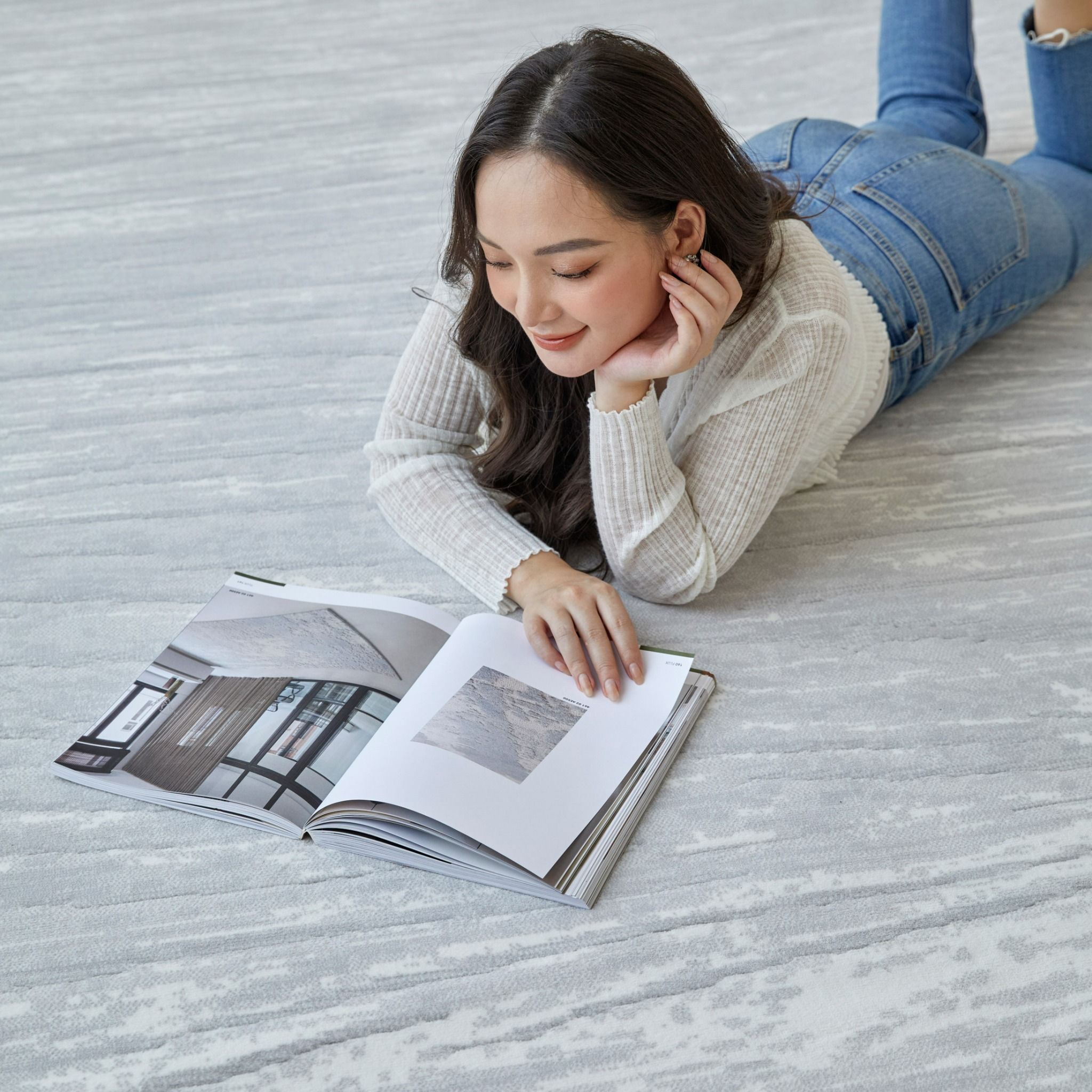 Mẫu thảm Piazzo 12.121.902 có thiết kế sóng lượn tối giản và thanh lịch trên nền Ghi và kem, được dệt với công nghệ Drop-stitched tạo các rãnh nhỏ dưới các đường sóng để tăng Texture. Sản phẩm sử dụng sợi Decolan ở chất lượng cao nhất, với đường kính đủ nhỏ cấu thành nên số điểm dệt vượt trội 1,100,000/M2. Độ hoàn thiện cao của sản phẩm đã tạo nên chi tiết hoa văn sắc nét, và trải nghiệm dưới chân êm đầm.