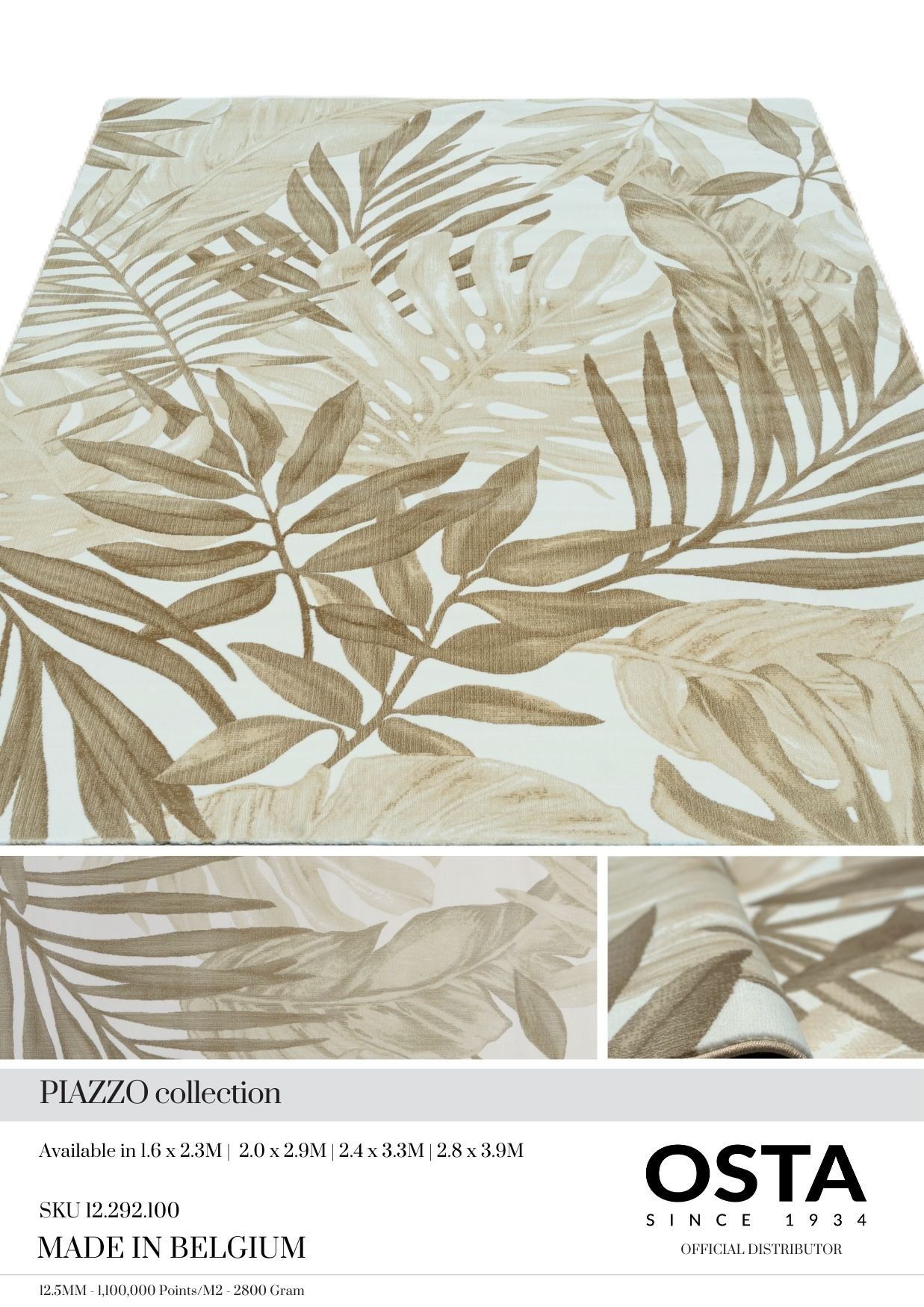 Mẫu thảm lấy cảm hứng thiết kế nhiệt đới, tạo cảm giác gần gũi với thiên nhiên qua hoa văn Leaves Arrangement - các lớp lá cây nhiệt đới lồng ghép. Sản phẩm sử dụng sợi Decolan ở chất lượng cao nhất, với đường kính đủ nhỏ cấu thành nên số điểm dệt vượt trội 1,100,000/M2. Độ hoàn thiện cao của sản phẩm đã tạo nên chi tiết hoa văn sắc nét, và trải nghiệm dưới chân êm đầm.